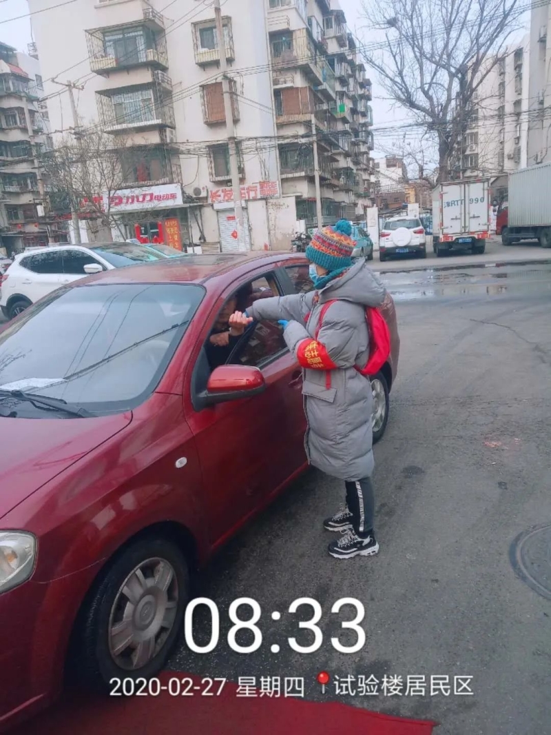 在一个周末清晨,雨丝一刻紧似一刻地在漫天飘荡,沈娇虹同志戴上党徽,身着志愿服务红马甲和红袖章,拿起体温枪开始了执勤工作。一位大姐看着在雨中坚持值守的她,心疼地说:“姑娘,一直下着雨还在坚持为我们值守,辛苦你们了!”面对这份善意与理解,沈娇虹同志从心底里感觉到了浓浓暖意与体贴。有时也曾因居民的不理解遭受埋怨,但凭着那份真心实意,执勤人与居民搭建起了彼此理解、彼此体谅、彼此关怀的情谊。全民一心共抗疫情,美丽春天如约而至!