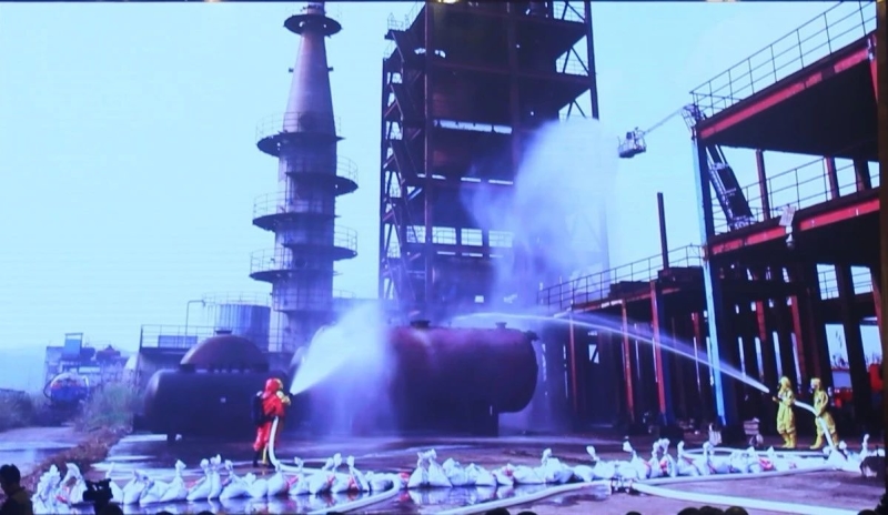此次演练模拟了二甲苯、矿物油储罐发生燃爆,导致二甲苯、矿物油随消防水进入长江干流直接相连的桐子溪,并可能导致长江干流水环境污染甚至造成跨省界污染的重大突发环境事件。